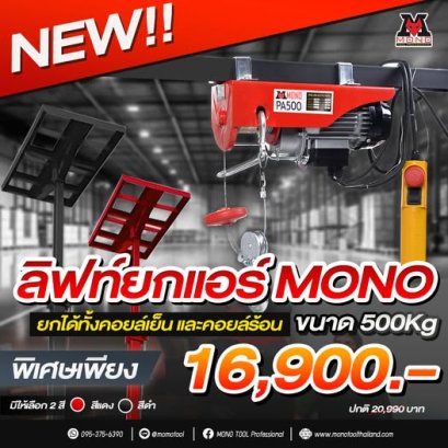ลิฟท์ยกแอร์ไฟฟ้าMONO เป็นลิฟท์ที่อำนวยความสะดวกให้กับพี่ช่าง ใช้งานง่าย สะดวกสบายเพื่อลดแรงคนในการยก ลดเวลาในการทำงาน ช่วยลดอุบัติเหตุที่จะเกิดขึ้น