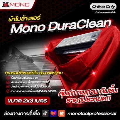 ผ้าใบล้างแอร์ MONO DuraClean ขนาด 2*3 เมตร เป็นผ้าใบล้างแอร์ชนิดผ้าใบไนลอน PU กันน้ำยาและเคมี 100 % ล้างแอร์ได้ตั้งแต่ 9,000 - 24,000 BTU
