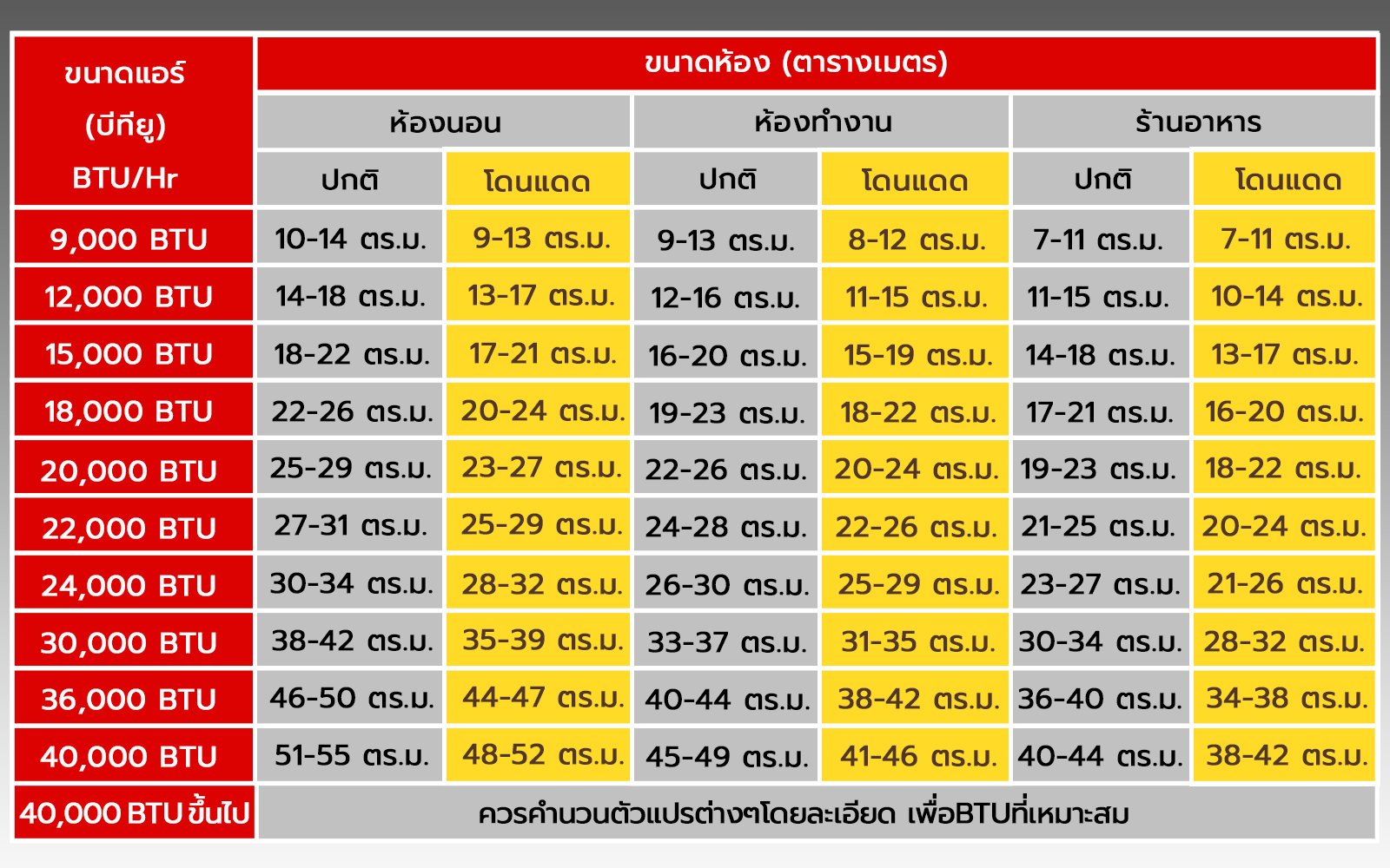 สรุป ก็คือ การเลือกขนาด BTU ของแอร์ให้เหมาะสมกับพื้นที่ของห้อง จะช่วยให้แอร์ทำงานได้เต็มประสิทธิภาพ ไม่สิ้นเปลืองพลังงาน และประหยัดค่าใช้จ่ายของคุณลูกค้าอีกด้วยนะครับ