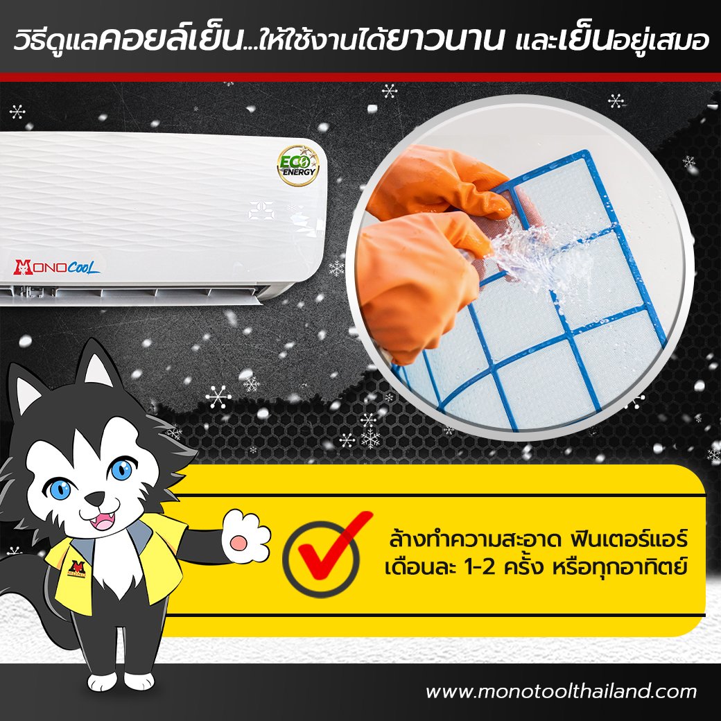 เราต้องดูแลทำความสะอาดฟิลเตอร์อยู่เสมอ เพื่อไม่ให้ฟิลเตอร์อุดตันไปด้วยฝุ่นละอองและสิ่งสกปรกต่าง ๆ เพราะถ้าฟิลเตอร์อุดตันจะทำให้ลมไม่สามารถหมุนเวียนผ่านคอยล์เย็นได้ ซึ่งจะทำให้เครื่องปรับอากาศไม่เย็น มีน้ำแข็งเกาะที่ตัวคอยล์เย็น และอาจมีน้ำหยดจากตัวเครื่องได้ เมื่อน้ำแข็งที่เกาะอยู่ละลาย