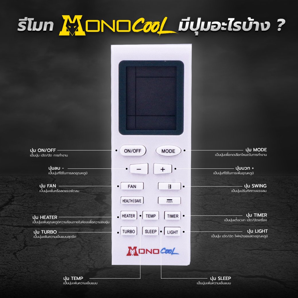 แบบนี้ก็รู้กันแล้วใช่มั้ยล่ะค่ะ ว่าการใช้งานรีโมทของคอยล์เย็นโมโนคูลไม่ได้ใช้งานแค่การปรับอุณหภูมิและการเปิด-ปิดเครื่อง อย่างเดียว แต่จิงๆแล้วยังสามารถทำงานได้หลายฟังชั่น มีประโยชน์หลายปุ่มและสามารถเลือกความเย็นสบายอย่างที่ต้องการได้